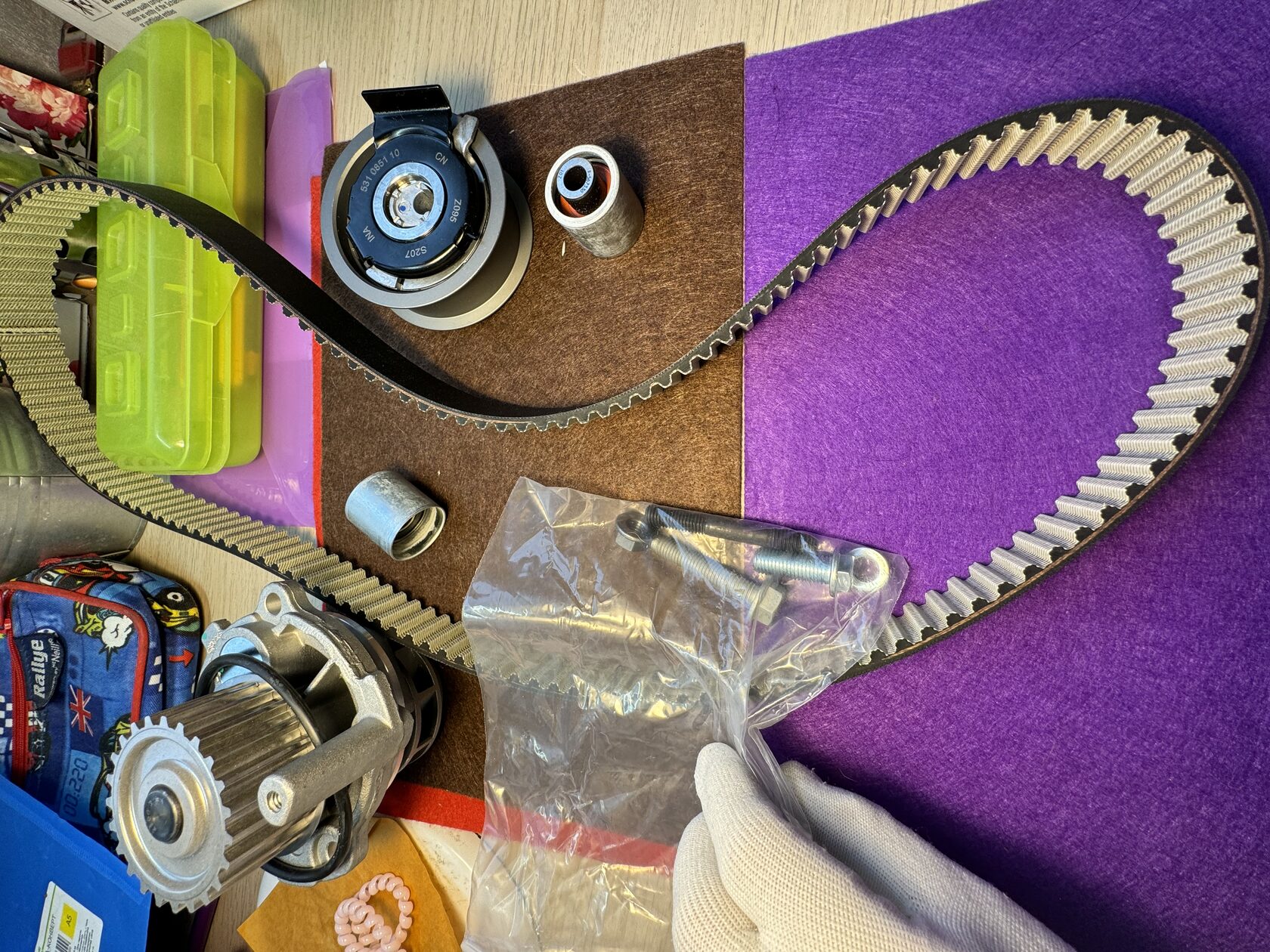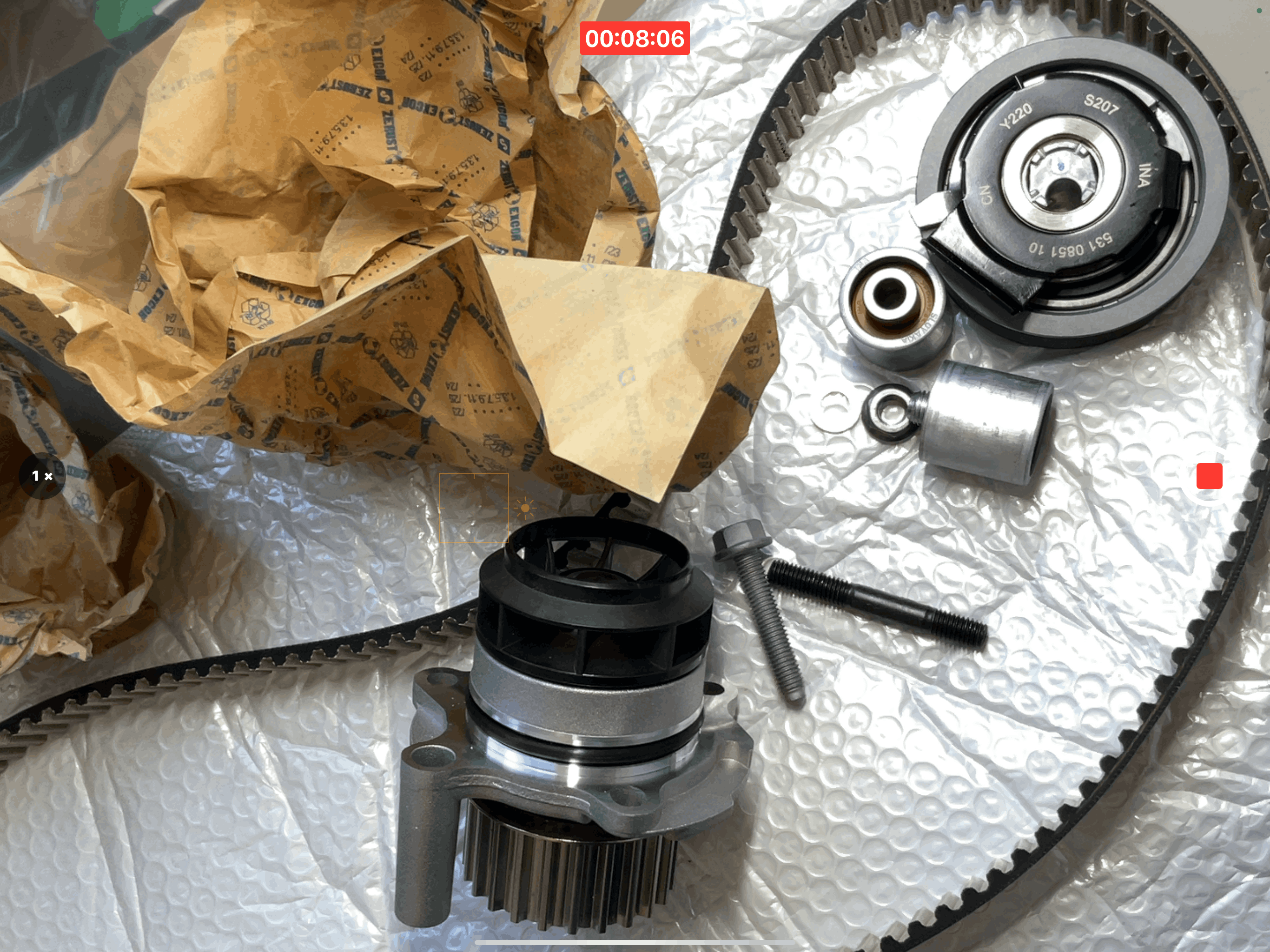 КОМПЛЕКТ ГРМ INA С ПОМПОЙ GATES VAG 2.0 FSI BVY - фотосессия во время сборки заказа