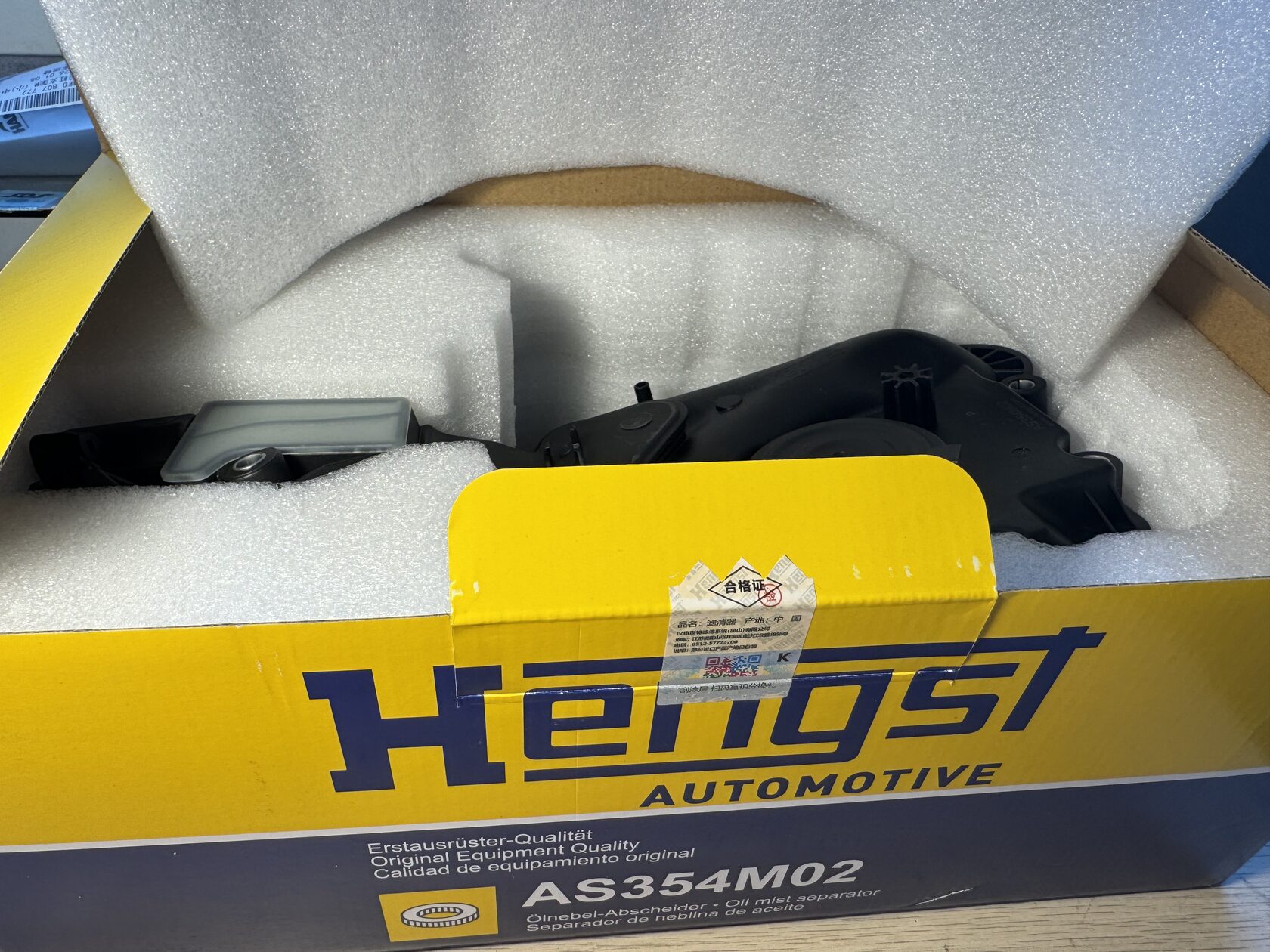 Изготовитель: Hengst Filtration System (Куньшань) Co., Ltd с QR кодом для проверки оригинальности.