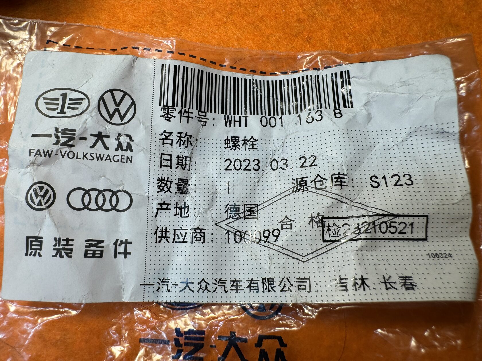 На болте маркировка, Faw-Volkswagen стараются до мелочей