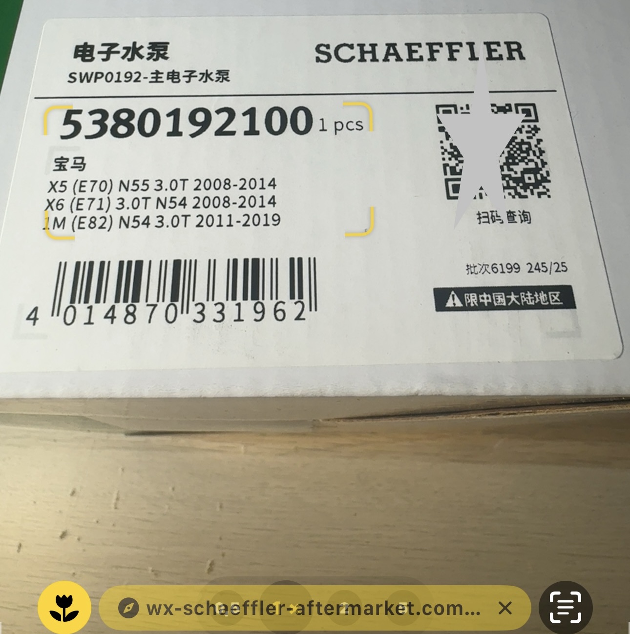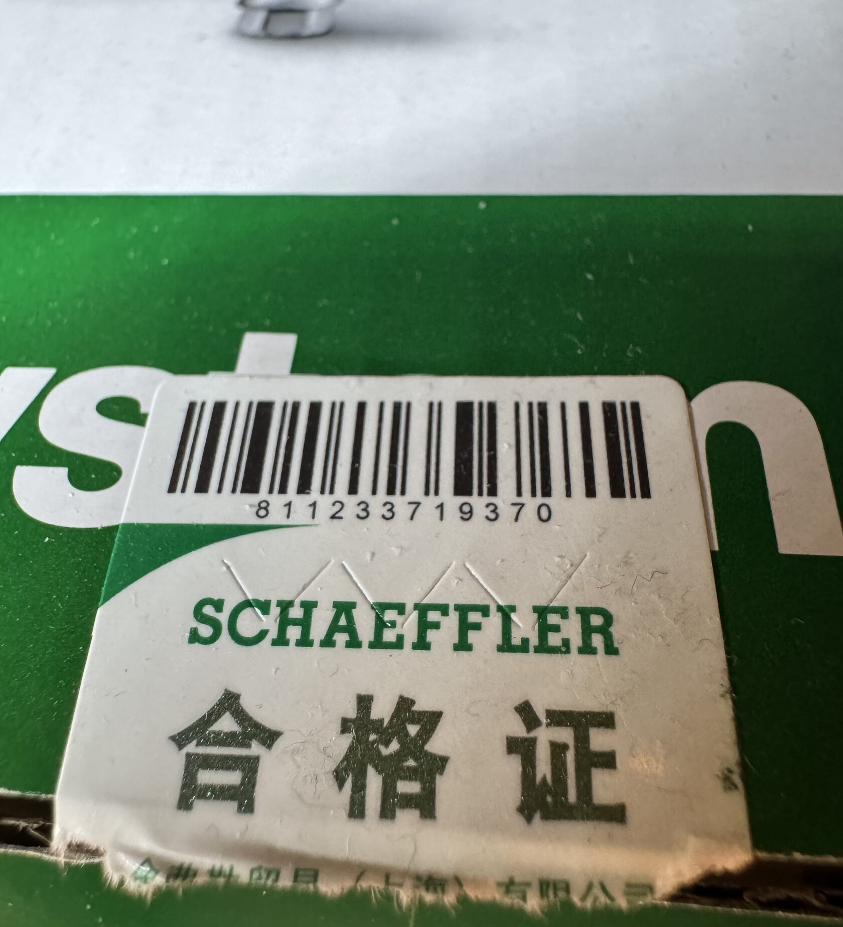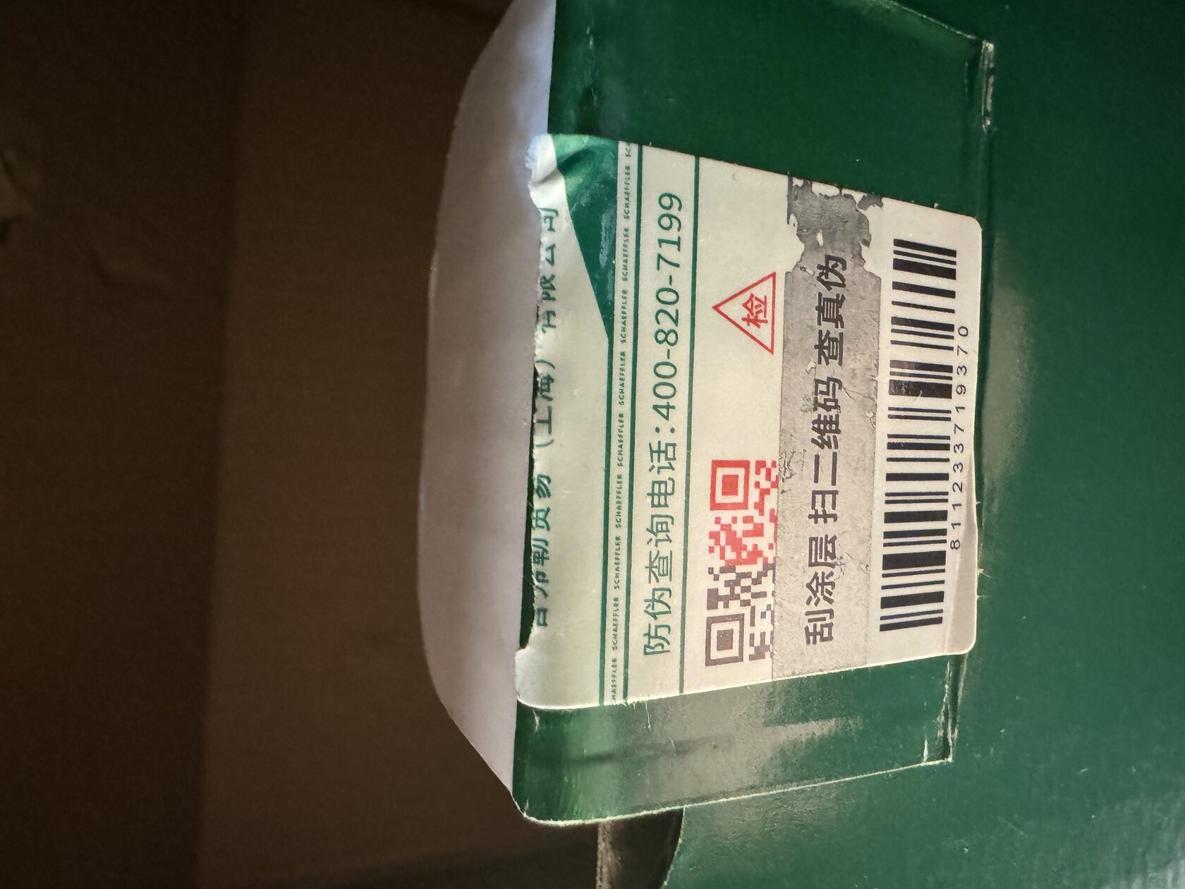 QR код размещён на защитном стикере упаковки для проверки оригинальности через оф.приложение SCHAEFFLER AG (China) в WeChat.