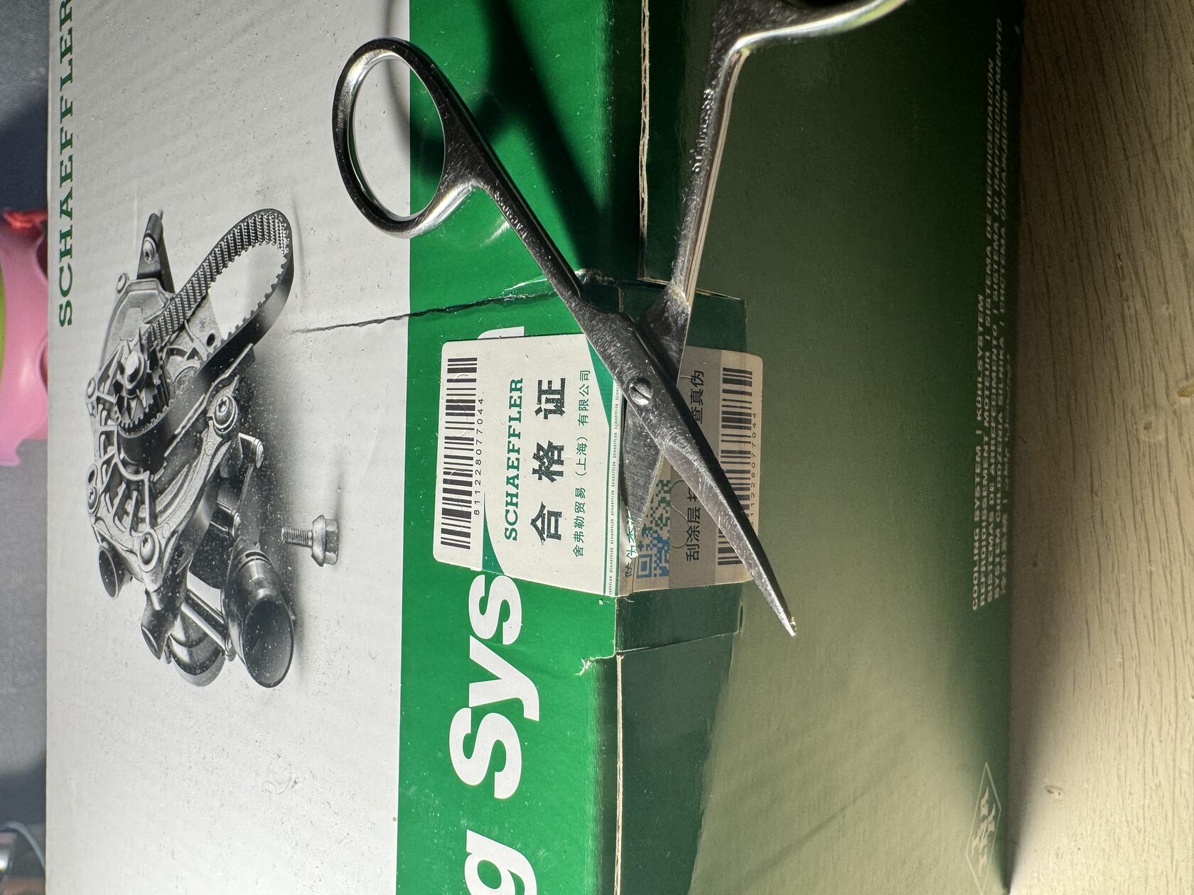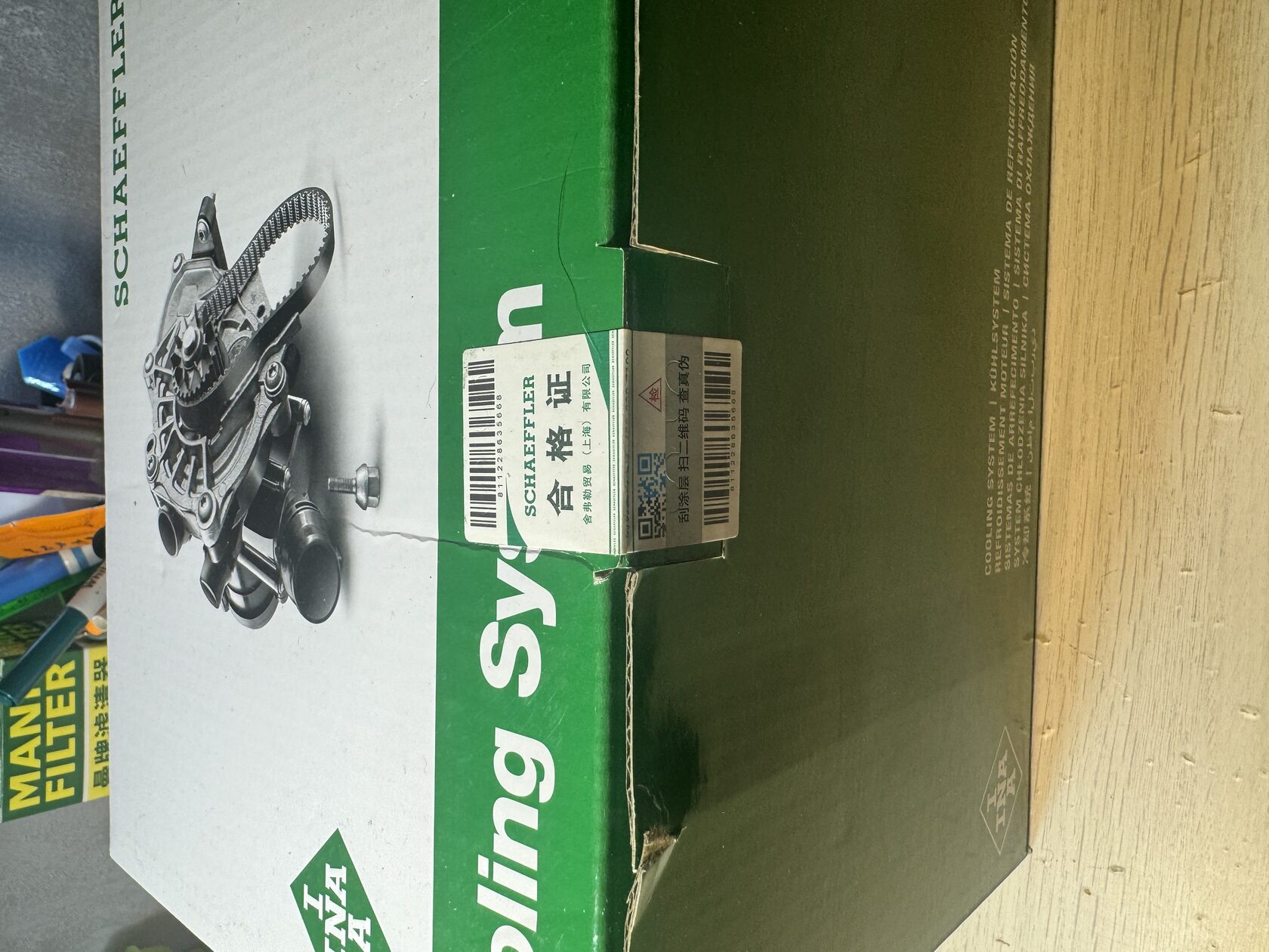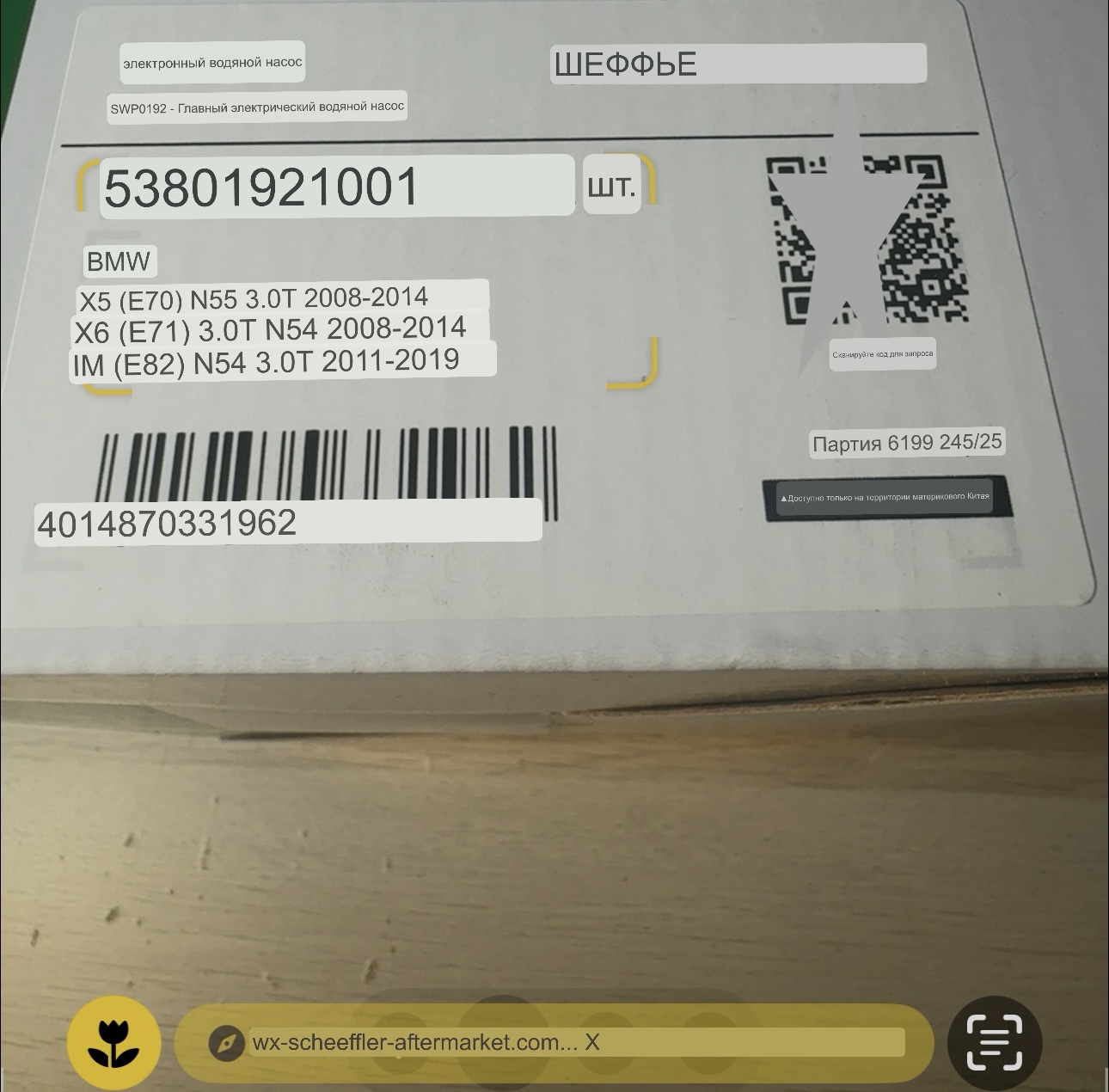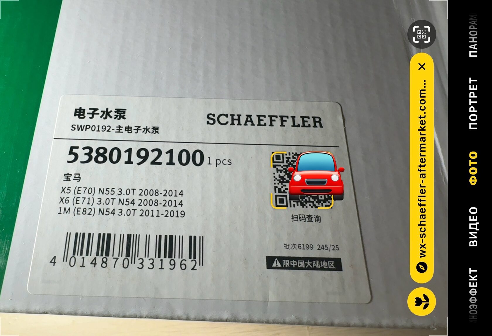 QR код размещён на защитном стикере упаковки для проверки оригинальности через оф.приложение SCHAEFFLER AG (China) в WeChat.